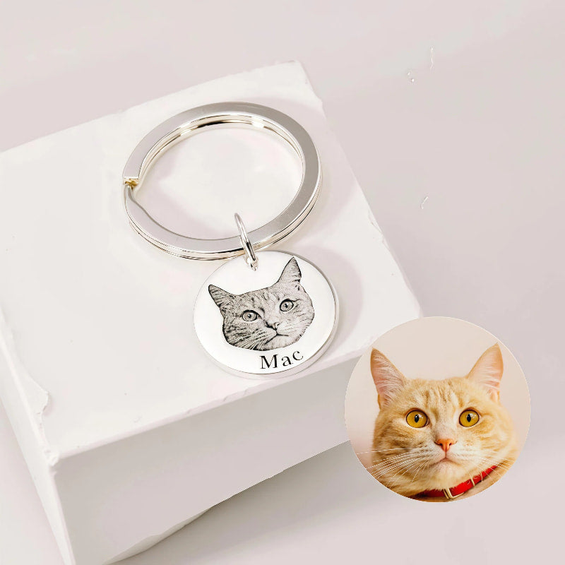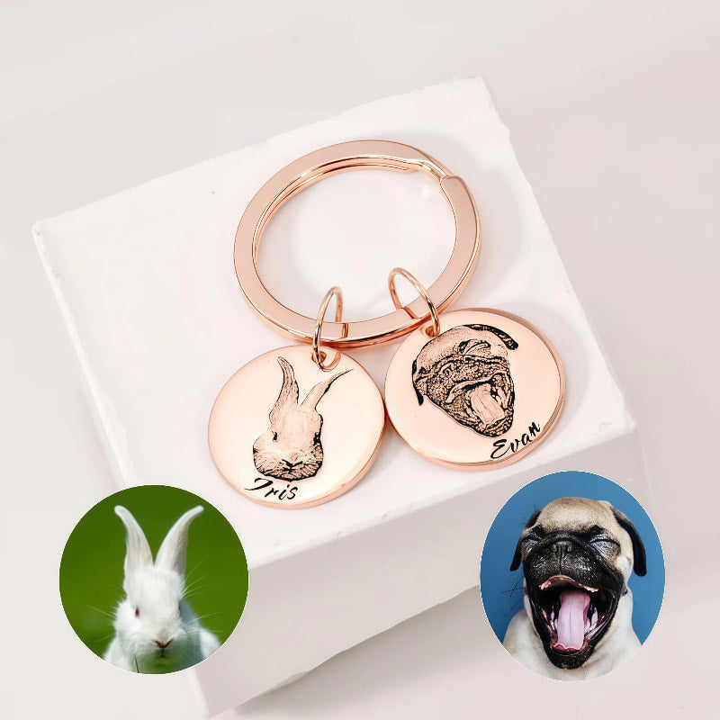Custom Engraved Pet Portrait Keychain