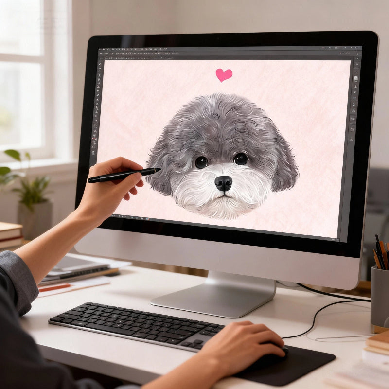 Zoiipet custom pet portraits are crafted with integrity. Our skilled digital artists create each portrait using a manual, highly technical process, ensuring every piece is unique. We never rely on filters or automated applications.